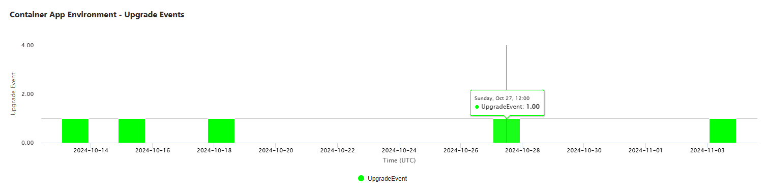 Nella finestra Diagnostica e risoluzione dei problemi è possibile visualizzare la finestra di manutenzione configurata e gli eventi di aggiornamento che si sono verificati nell'ultimo mese. Quando si passa il puntatore del mouse sulle barre del grafico, è possibile visualizzare l'ora di inizio per ogni evento di aggiornamento.
