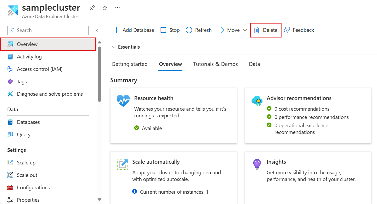 Questo articolo illustra come eliminare un cluster Esplora dati di Azure. Se si elimina un cluster attivo per più di 14 giorni, viene immesso un periodo di eliminazione temporanea per 14 giorni. Durante questo periodo di tempo di eliminazione temporanea, il cluster è recuperabile e può essere ripristinato e non è possibile creare un altro cluster con lo stesso nome. Dopo 14 giorni, il cluster viene eliminato definitivamente e non può essere ripristinato.