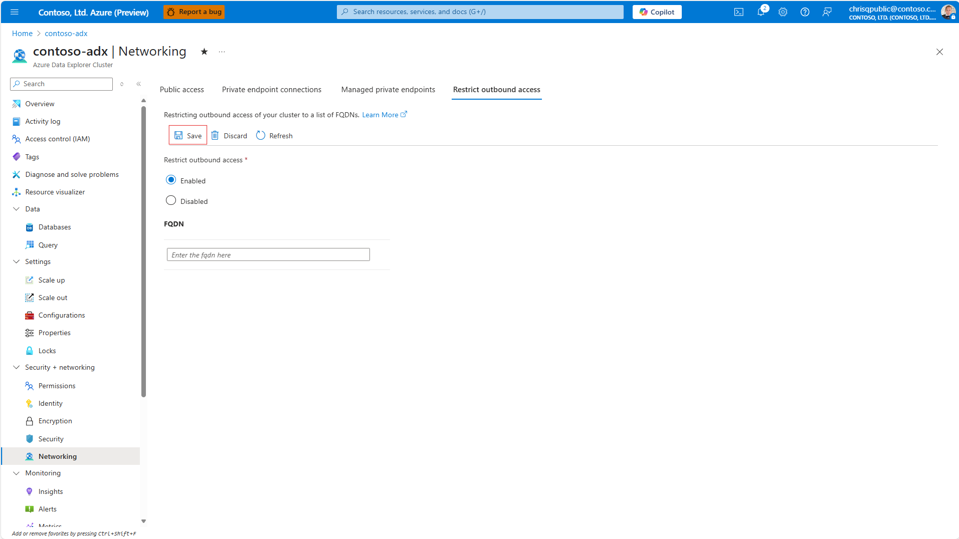 Implementando l'accesso in uscita limitato, le aziende possono garantire che i cluster di Esplora dati di Azure siano protetti dai rischi di esfiltrazione dei dati, in linea con gli standard di conformità e sicurezza.