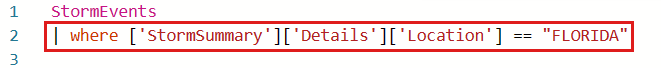 Locationcampo, annidato nelDetailscampo all'interno dell'oggetto property-bag dinamico dellaStormSummarycolonna.Selezionare l'icona a destra di JPATH per copiarla. Quindi, incollare e usare JPATH come filtro o condividerlo con altri utenti.