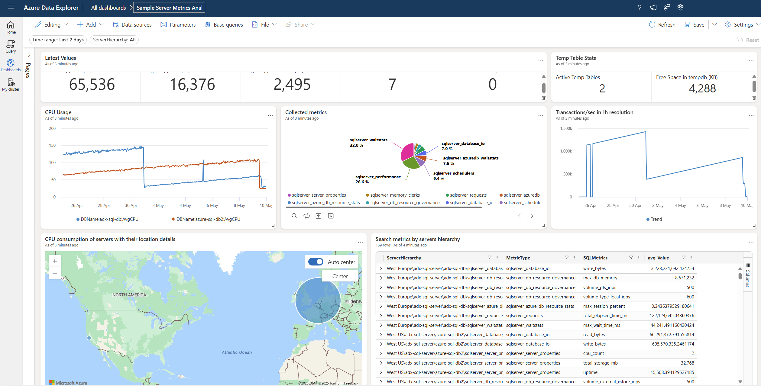 L'interfaccia utente Web di Esplora dati di Azure include una raccolta di esempi in cui è possibile visualizzare i dashboard predefiniti senza la necessità di creare un proprio cluster e un database o inserire dati. Usando i dashboard, è possibile modificare parametri e oggetti visivi diversi per ottenere informazioni dettagliate dai dati.