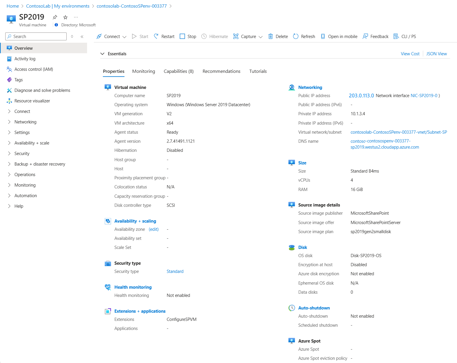 Quando l'ambiente è pronto, è possibile espandere la voce nel elenco I miei ambienti per visualizzare le macchine virtuali provisionate dal modello.