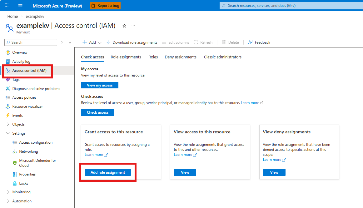 - Nel portale di Azure, vai al Key Vault.