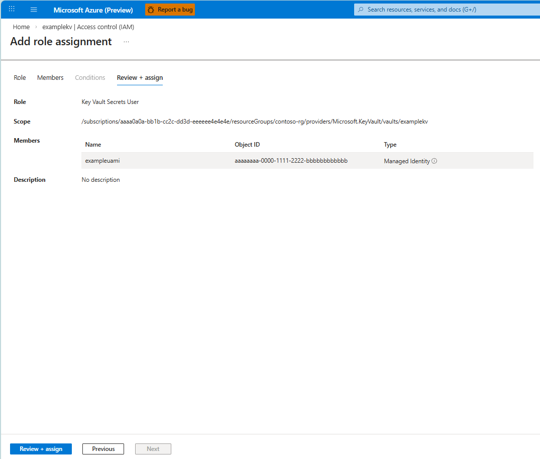 - Selezionare Rivedi e assegna per completare l'assegnazione di ruolo.