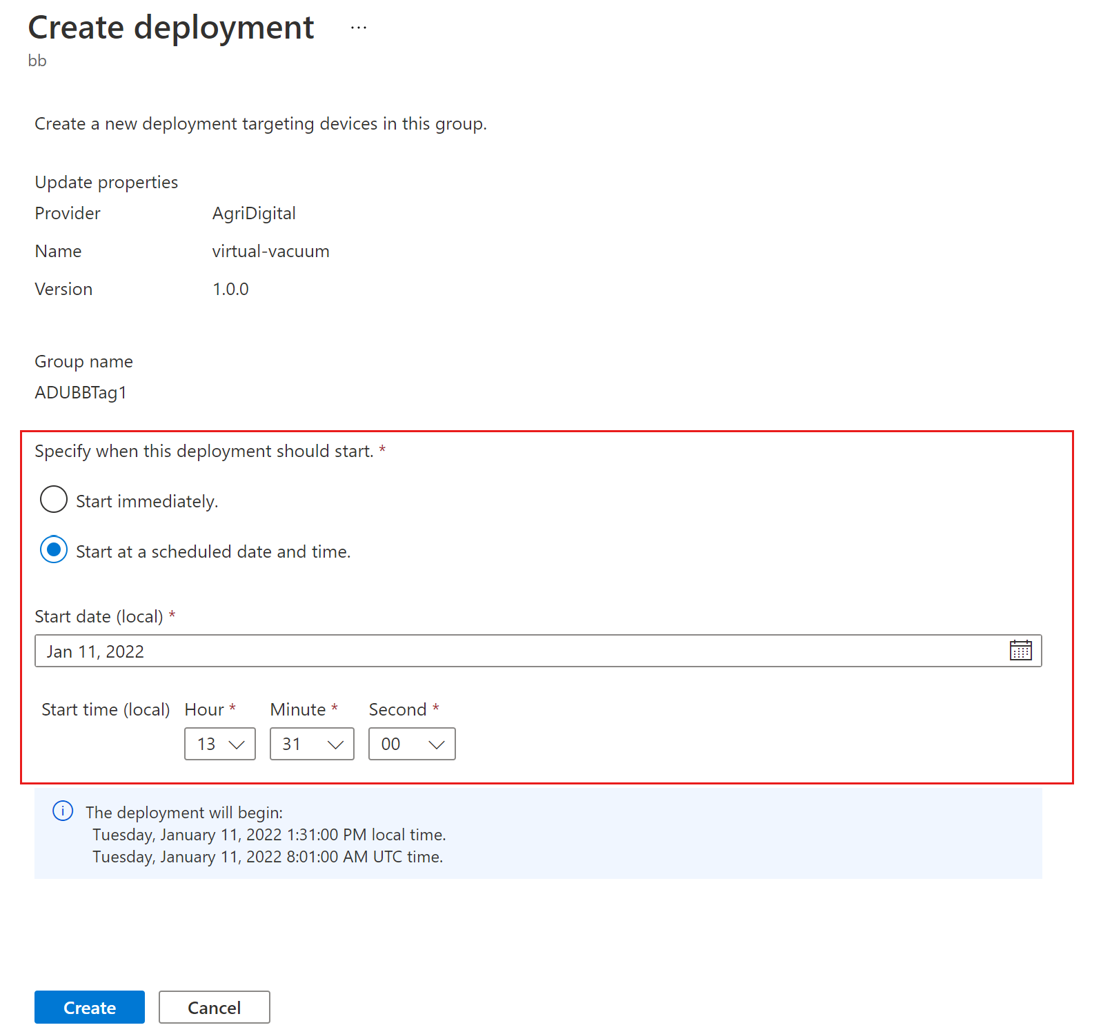 Per impostazione predefinita, la data e l'ora di inizio sono 24 ore dall'ora corrente. Assicurarsi di selezionare una data e un'ora diverse se si vuole che la distribuzione inizi prima.