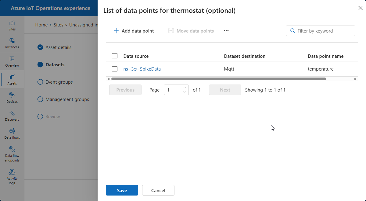 In questa esercitazione è stato aggiunto un dispositivo e quindi sono stati definiti un asset e tag. Gli asset e i tag modellano i dati del server OPC UA per semplificare l'uso dei dati in un broker MQTT e in altri processi downstream.