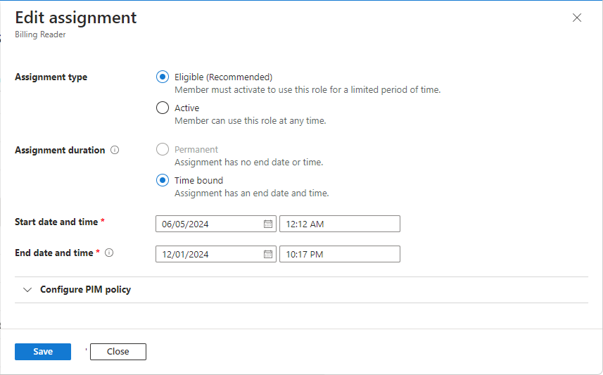 Se si dispone di PIM, è possibile creare assegnazioni di ruolo idonee e associate a tempo usando la pagina Controllo di accesso (IAM) nella portale di Azure. È possibile creare assegnazioni di ruolo idonee per gli utenti, ma non è possibile creare assegnazioni di ruolo idonee per applicazioni, entità servizio o identità gestite perché non possono eseguire i passaggi di attivazione. Nella pagina Controllo di accesso (IAM) è possibile creare assegnazioni di ruolo idonee nell'ambito del gruppo di gestione, della sottoscrizione e del gruppo di risorse, ma non nell'ambito della risorsa.