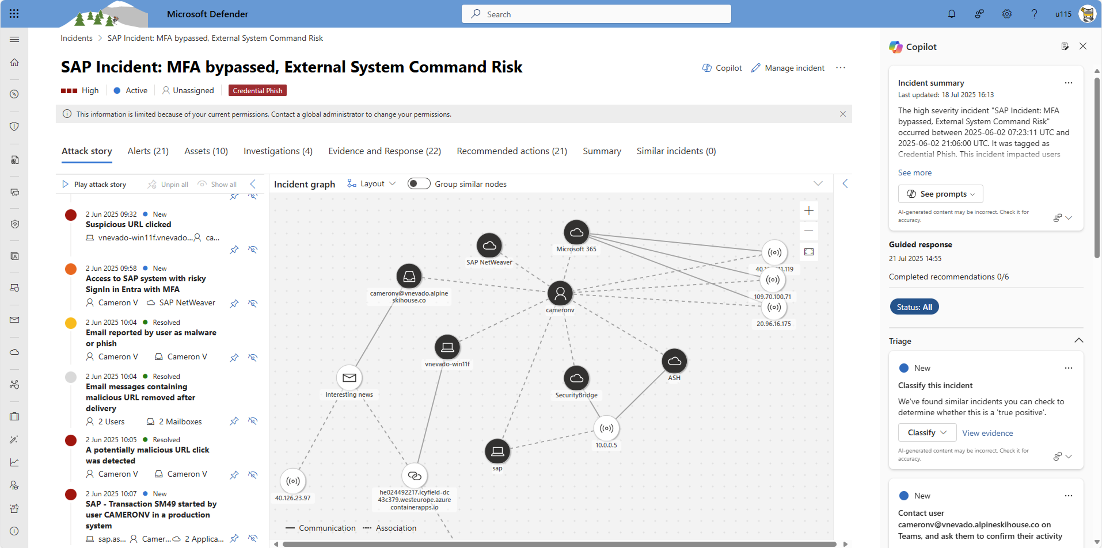I componenti aggiuntivi semplificano il rilevamento e la risposta convertendo i rischi specifici di SAP in informazioni dettagliate interattive usando le funzionalità della soluzione Microsoft Sentinel per SAP.