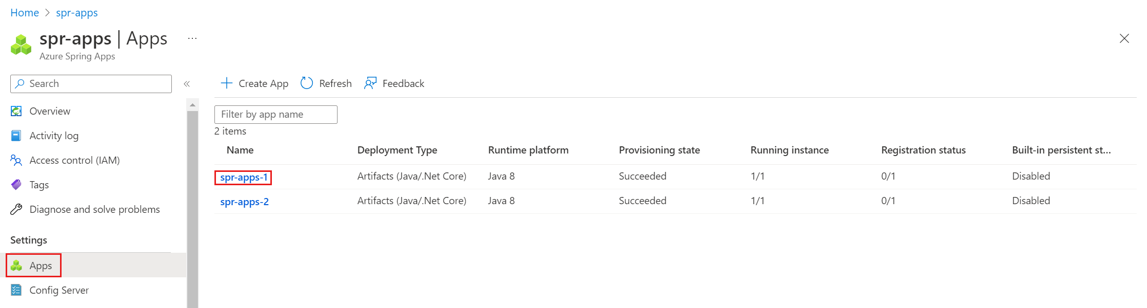 az spring storage list-persistent-storagecomando per elencare tutte le applicazioni correlate. - Rigenerare