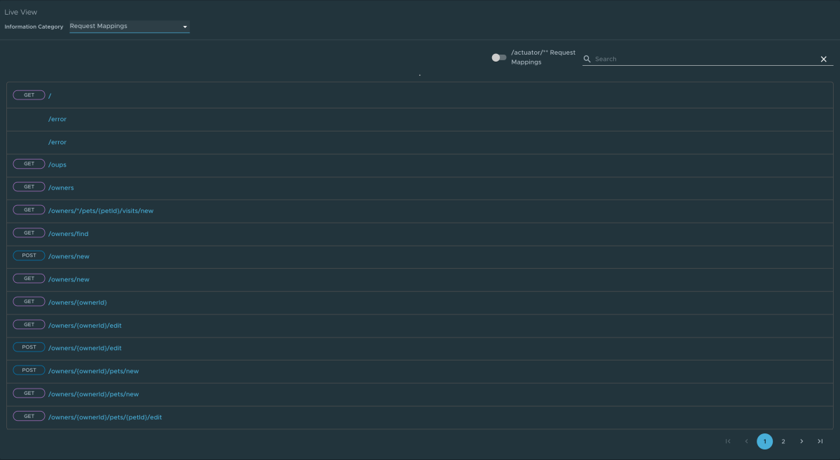 - Visualizzare i mapping correlati all'attuatore per l'app usando l'interruttore /attuatore/** Mapping delle richieste
