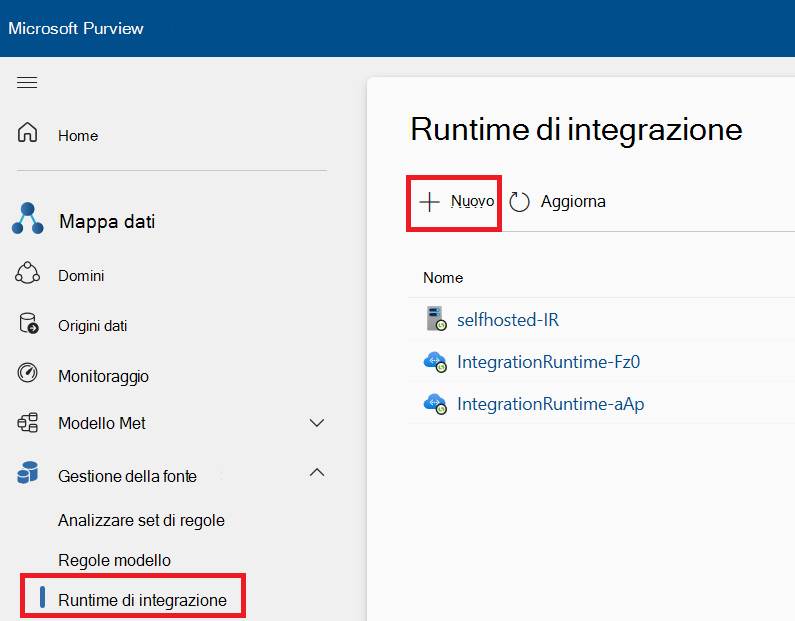 Aprire la finestra Runtime di integrazione nel Microsoft Purview Data Map