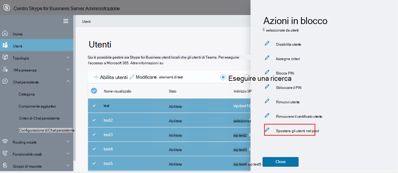 Spostare gli utenti da Skype for Business Server 2015 a Skype for Business Server 2019 usando la sezione Utenti in Modern Amministrazione Pannello di controllo (MACP).Aggiungere utenti come creatori: