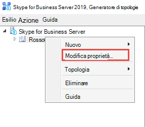 Aprire il Generatore di topologie di Skype for Business Server 2019 e fare clic con il pulsante destro del mouse sul nome del sito.