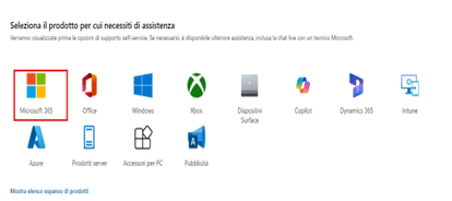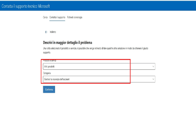 Scegli tra le seguenti categorie: Altri prodotti, Gestisci la sicurezza dell'account.