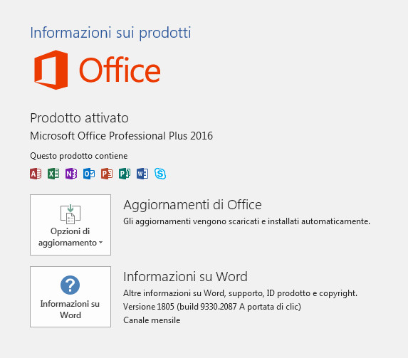 Dallo screenshot che hai allegato, appare che la tua versione di Office è la Professional Plus 2016.