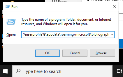 - Dopo aver scaricato il file, apri il comando Esegui sul tuo computer premendo il tasto Windows + r sulla tastiera. Incollare quindi questo percorso %userprofile%\AppData\Roaming\Microsoft\Bibliography\Style