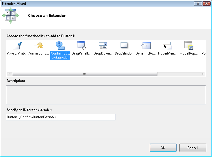 - Nella finestra di dialogo Scegli estensione selezionare ConfirmButtonExtender (vedere Figura 5) e fare clic sul pulsante OK.