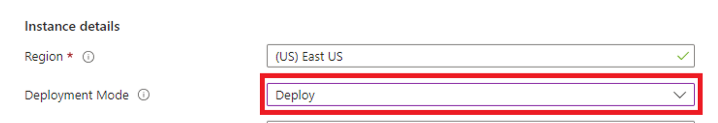 Scorri fino in fondo e conferma che Deployment Mode = Deploy.