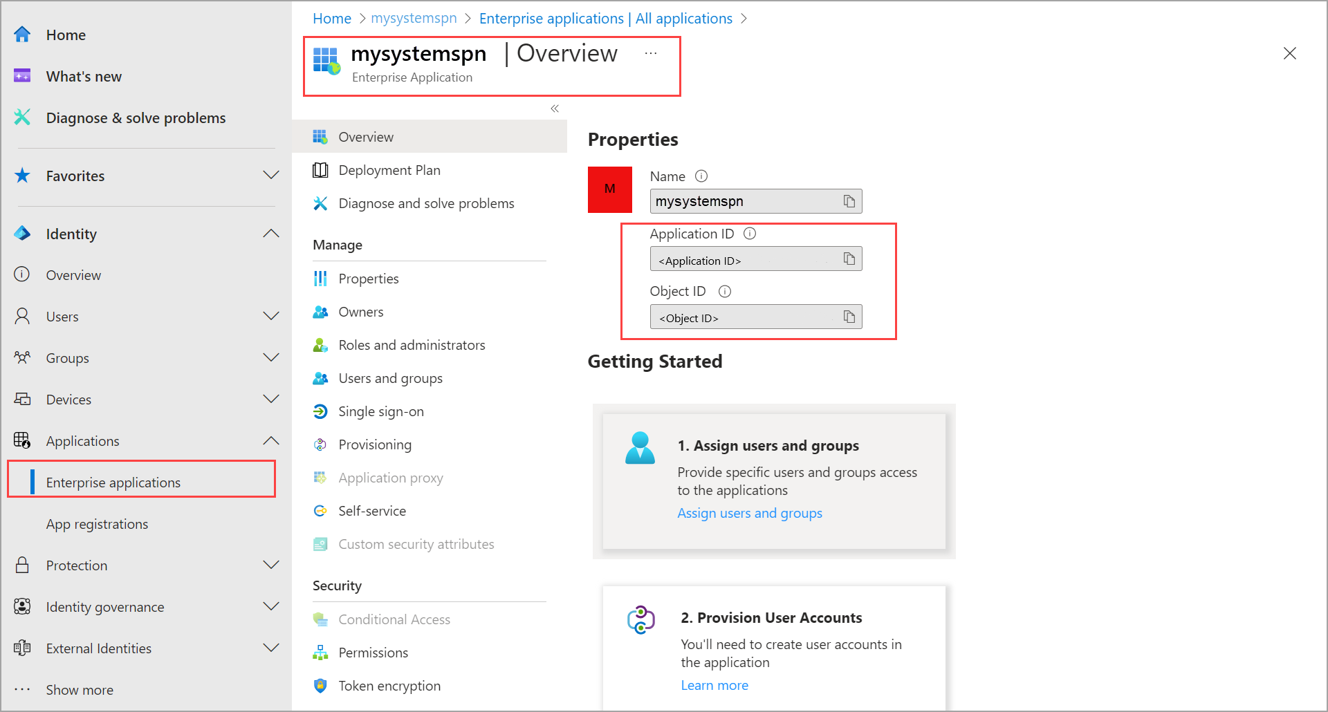 Selezionare il Nome Principale del Servizio elencato e copiare l'ID oggetto.