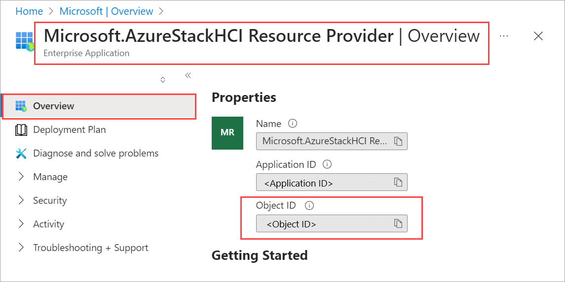 Usare l'ID oggetto per il hciResourceProviderObjectID parametro nel modello di Resource Manager.
