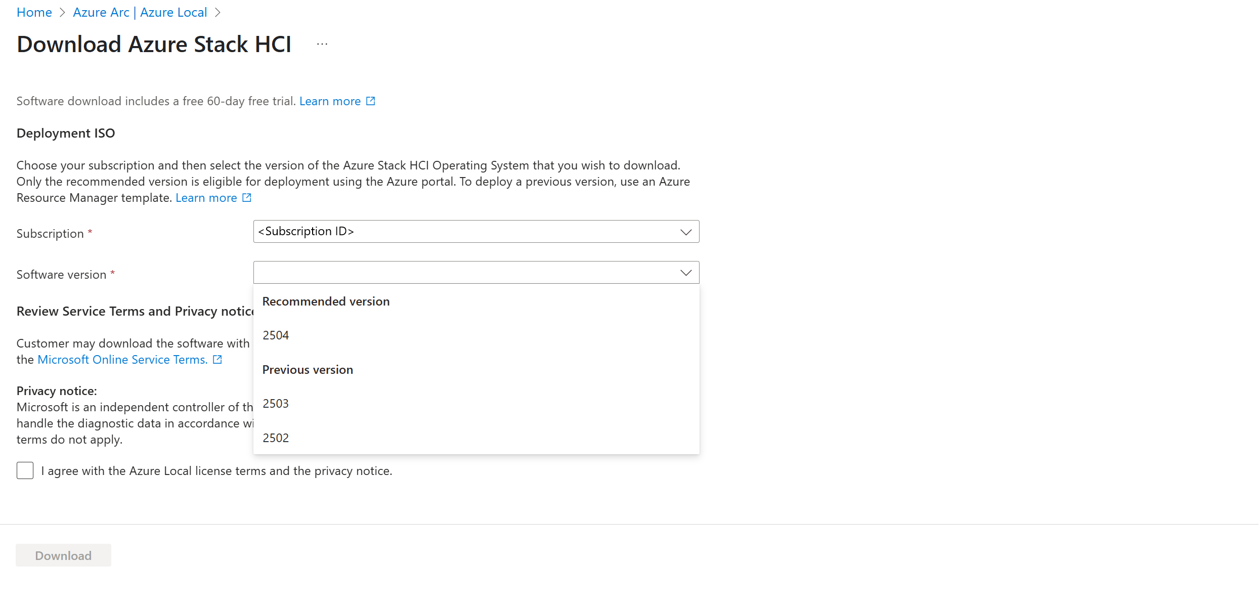 Nella pagina Download Azure Stack HCI (Scarica Azure Stack HCI ) eseguire le operazioni seguenti:
