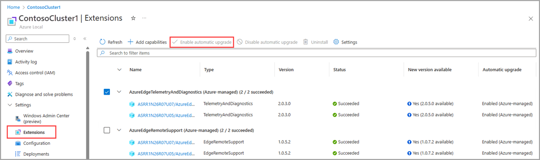 Per un gruppo di cluster abilitati per Azure Local Arc in fase di aggiornamento, la piattaforma Azure ha usato il modello di aggiornamento automatico delle estensioni per orchestrare gli aggiornamenti.