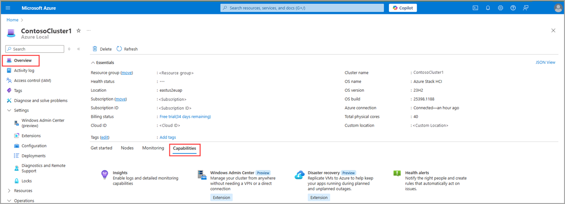 È possibile installare, disinstallare e aggiornare le estensioni di Azure Arc nell'istanza locale di Azure. Azure Arc consente di eseguire servizi ibridi come il monitoraggio e Windows Admin Center nella portale di Azure.