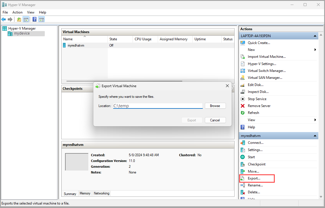 Esportare un VHDX o copiare il VHDX dalla macchina virtuale. È possibile usare i seguenti metodi: