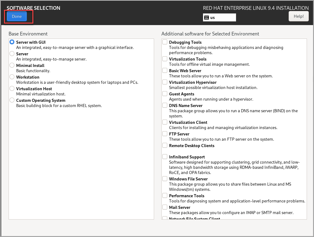 Selezionare Selezione software, mantenere le impostazioni predefinite e selezionare Fine.