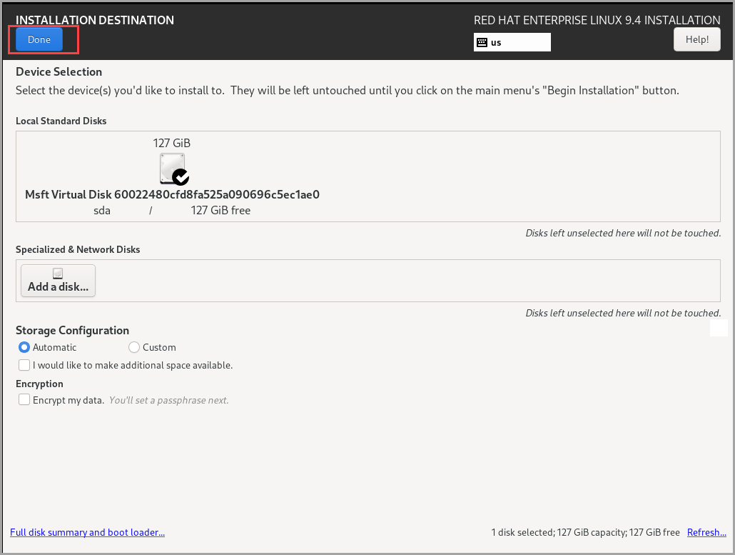 Selezionare Install Red Hat Enterprise Linux 9.4 (Installa Red Hat Enterprise Linux 9.4 ) dal menu di avvio.