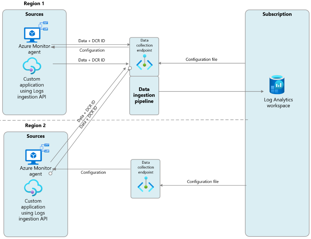 Creare un endpoint di raccolta dati in ogni area con un'area di lavoro Log Analytics di destinazione per inviare dati alle aree di lavoro Log Analytics in tale area.