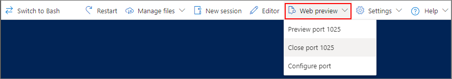 La funzionalità anteprima Web consente di aprire le porte nel contenitore Cloud Shell per comunicare con le applicazioni in esecuzione. Il menu Anteprima Web consente di immettere il numero di porta che si desidera aprire.