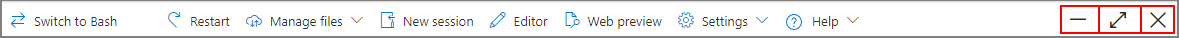 Le icone in alto a destra della finestra vengono usate per gestire lo stato della finestra di Cloud Shell.