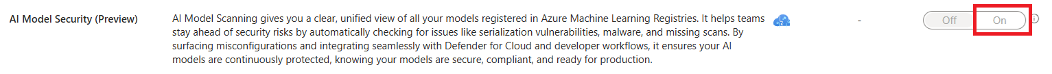 La sicurezza del modello di intelligenza artificiale in Defender for Cloud offre alle organizzazioni la protezione proattiva per i modelli di Machine Learning (ML). Il servizio analizza i modelli per individuare i rischi per la sicurezza, come malware incorporato, operatori non sicuri e segreti esposti, prima che i modelli raggiungano la produzione.