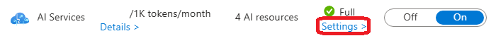 Individuare i servizi di intelligenza artificiale e selezionare Impostazioni.