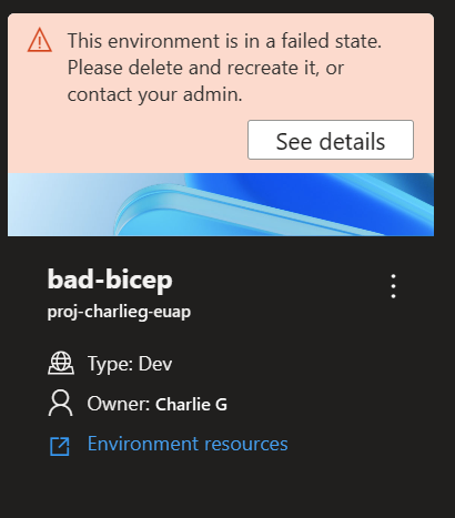 Identificare l'ambiente che ha restituito l’errore di distribuzione e selezionare Visualizza dettagli.