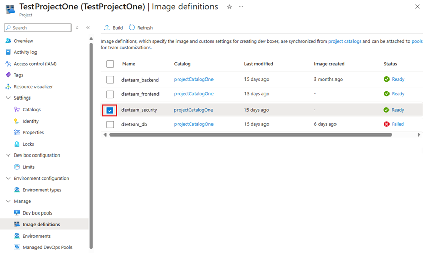 Le immagini vengono compilate automaticamente per impostazione predefinita per i cataloghi contenenti definizioni di immagine ogni volta che viene rilevata una nuova definizione di immagine o ne viene aggiornata una esistente. Anche se le compilazioni automatiche consentono di evitare configurazioni non aggiornate e migliorare l'affidabilità delle dev box, durante il runtime comportano costi attraverso i contatori delle dev box. Durante il processo di compilazione dell'immagine, viene creata una casella di sviluppo per eseguire il file di personalizzazione e generare un'immagine, che comporta costi in base alle risorse di calcolo e al tempo necessario per compilare l'immagine. È possibile disabilitare le compilazioni automatiche delle immagini durante la creazione del catalogo o successivamente tramite le impostazioni del catalogo.
