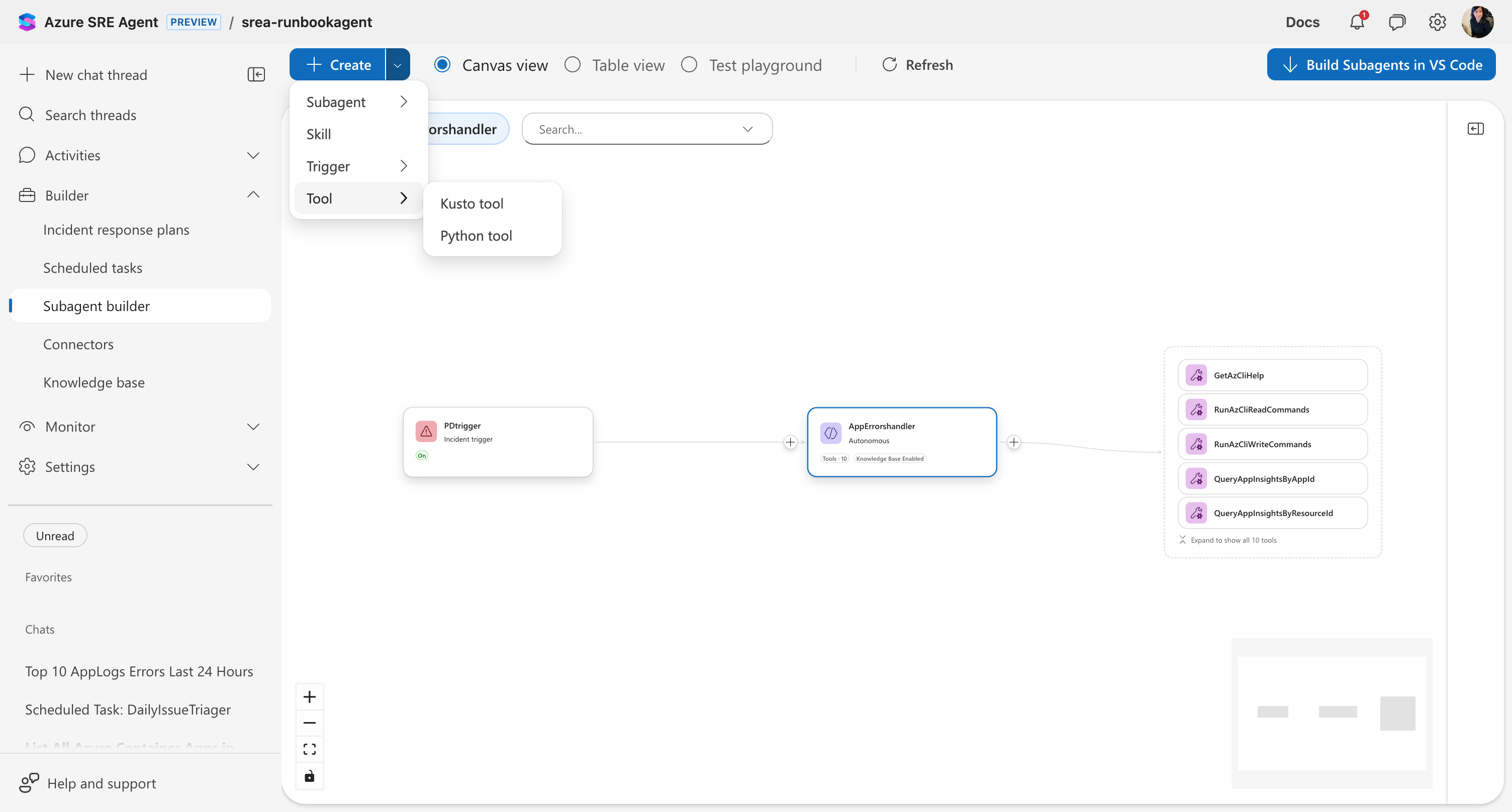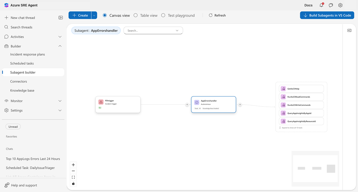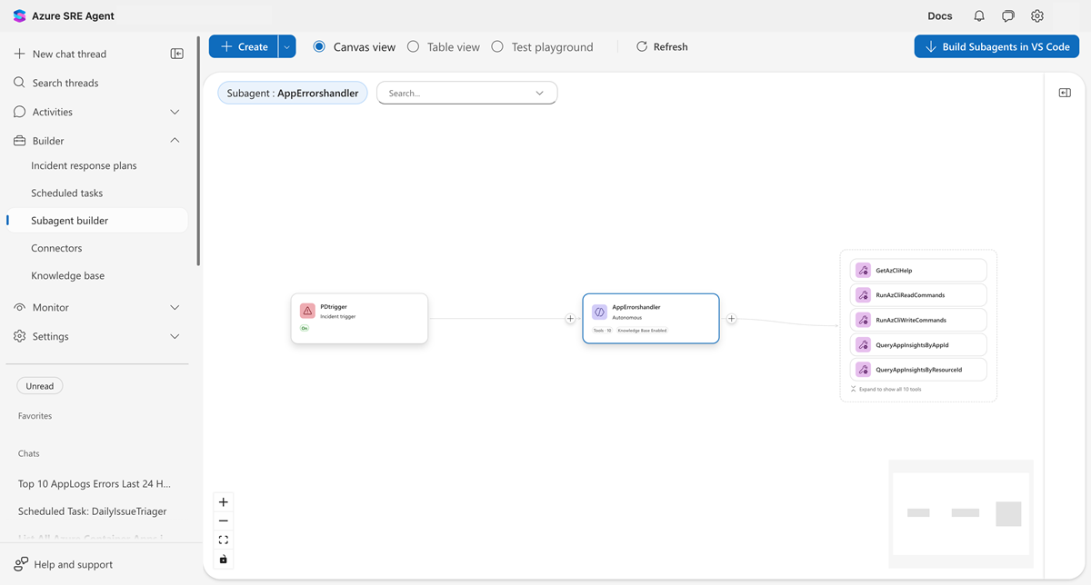 - Accesso a Builder nel portale dell'agente SRE di Azure.