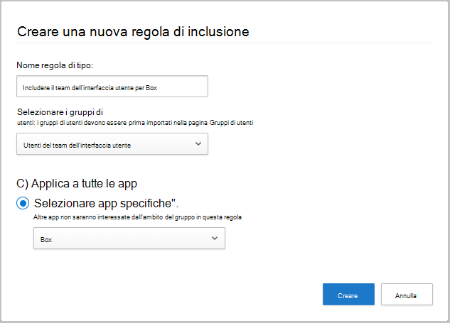 Nella finestra di dialogo Crea nuova regola di inclusione completare la procedura seguente: