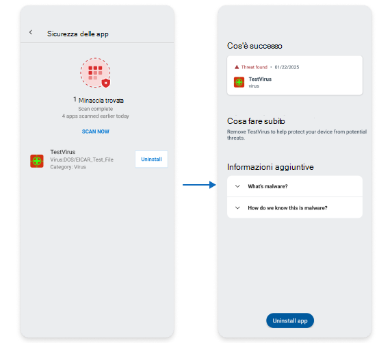 L'immagine seguente evidenzia la funzionalità 'Threat Found', mostrandone la funzionalità sia prima che dopo l'aggiornamento recente.