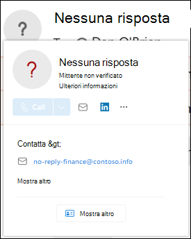 Indicatori del mittente non autenticati: disponibili nella sezione Suggerimenti per la sicurezza & indicatori solo quando l'intelligence di spoofing è attivata. Vedere i dettagli nella sezione successiva.