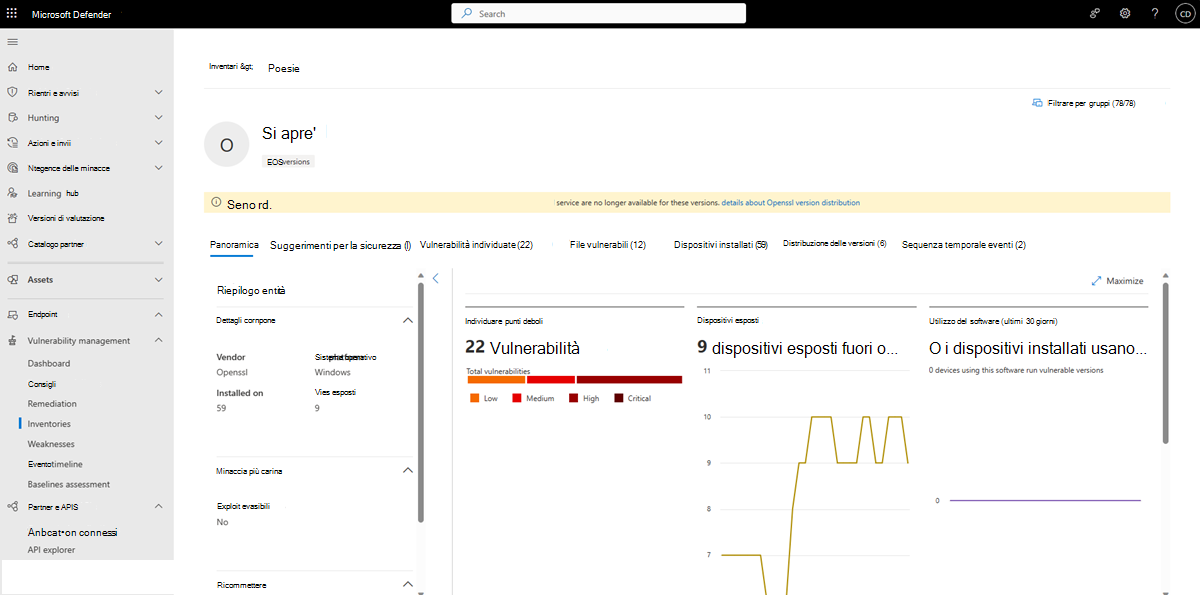 La pagina Componenti vulnerabili è stata rinominata Componenti software.