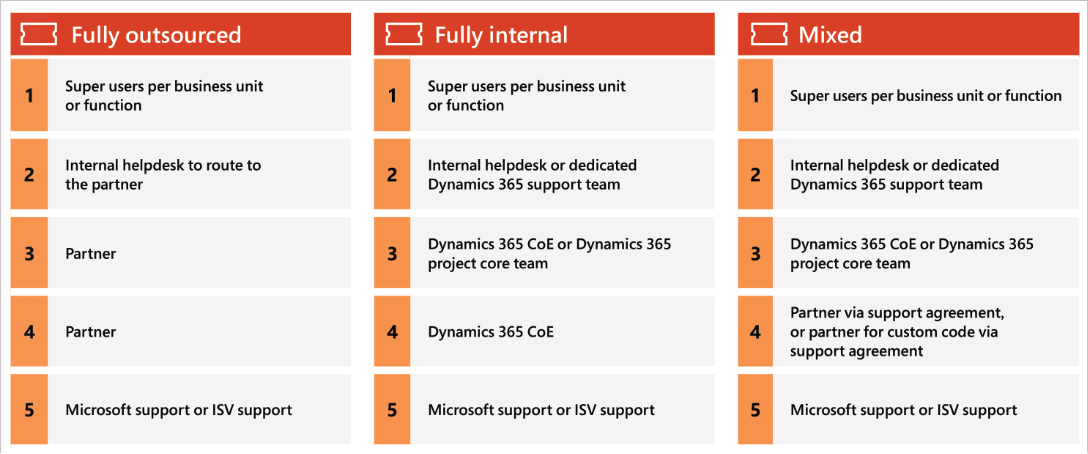 A support model defines how you provide technical assistance and maintenance for your Dynamics 365 solution. You should start planning your support model in the Implement phase of your project, so that you can test it before user acceptance testing (UAT), use it during the Prepare phase, and have it fully operational by the Operate phase.