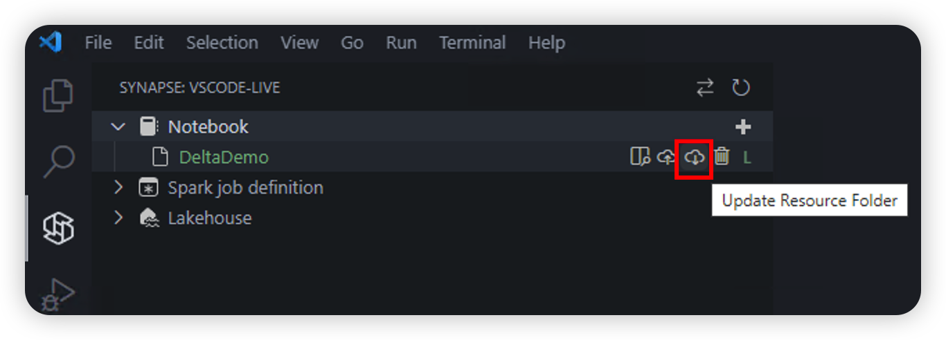 Per scaricare la risorsa del notebook dall'area di lavoro remota, selezionare l'opzione Aggiorna cartella delle risorse. Il processo di download scarica tutti i file e le sottocartelle nella cartella builtin verso la cartella del notebook locale. Il processo di download sovrascrive la versione locale dei file di risorse. Per i file che non esistono più nell'area di lavoro remota, il processo di download li sposta in una sottocartella _backup nella cartella padre originale.