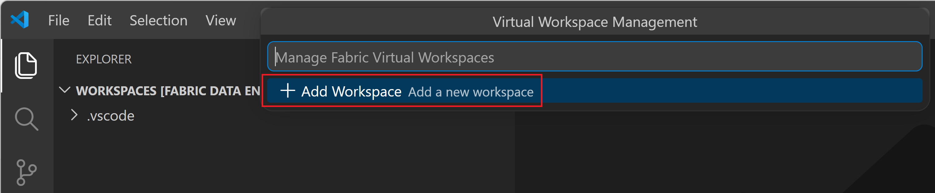 Fare clic con il pulsante destro del mouse su qualsiasi area vuota nella visualizzazione Explorer (o premere MAIUSC+F10) per aprire il menu di scelta rapida. Scorrere verso il basso se necessario e selezionare Gestisci Fabric Workspaces.