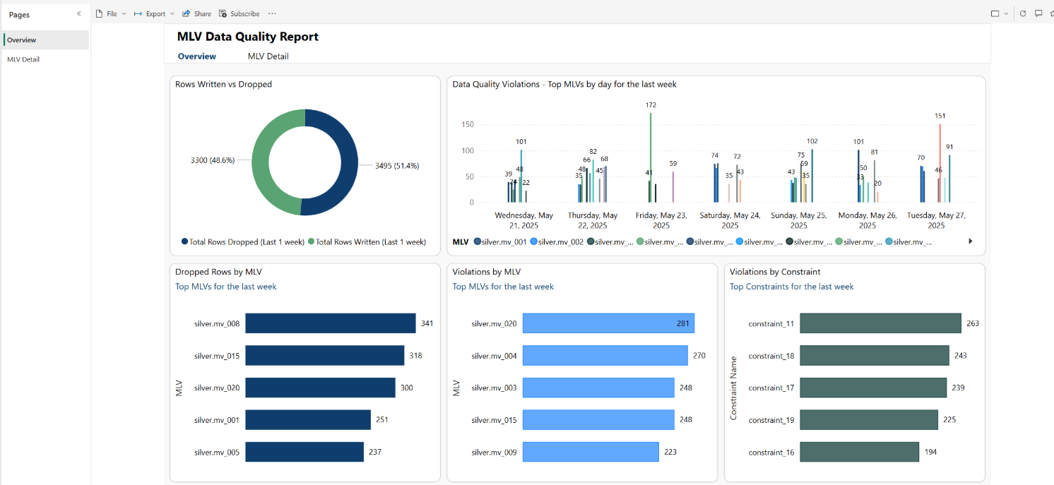 - Totale righe scritte in tutti gli MLV nella lakehouse (ultima settimana)