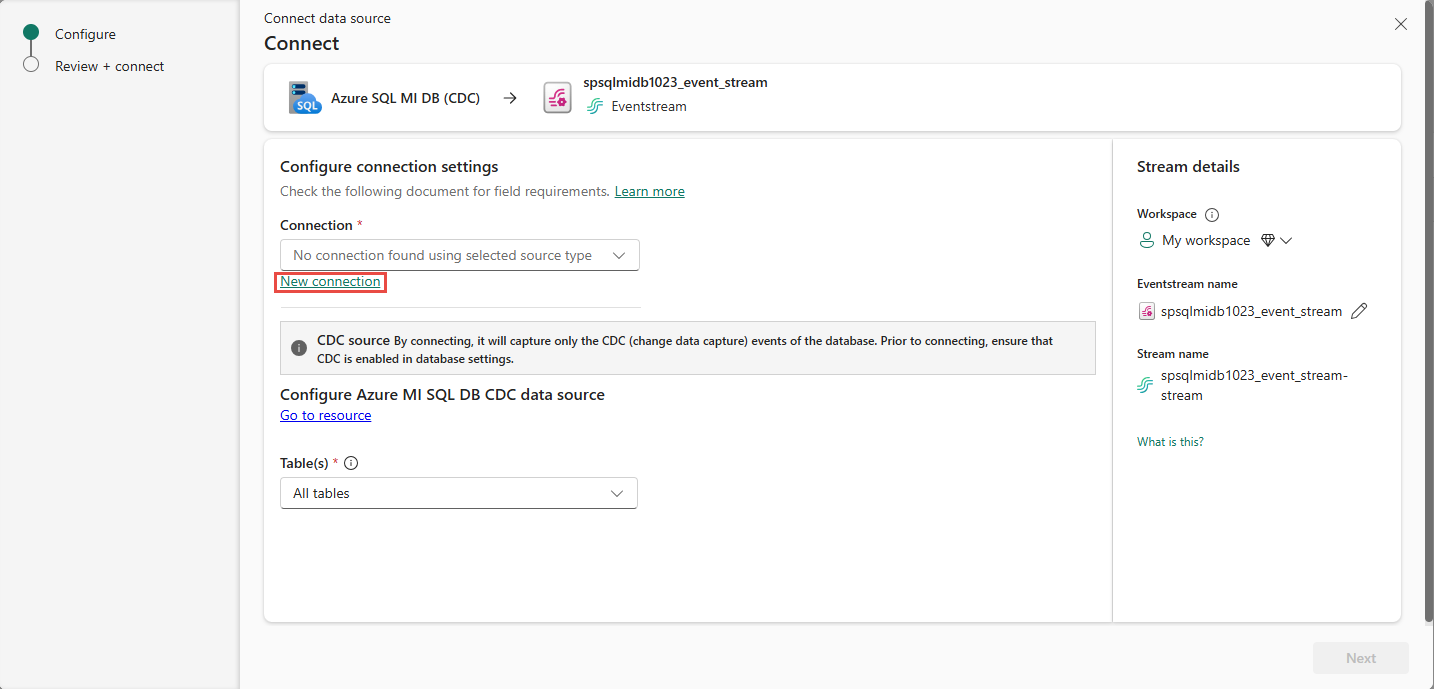 Questo articolo descrive come aggiungere Istanza gestita di SQL di Azure CDC come origine evento nell'hub in tempo reale di Fabric.