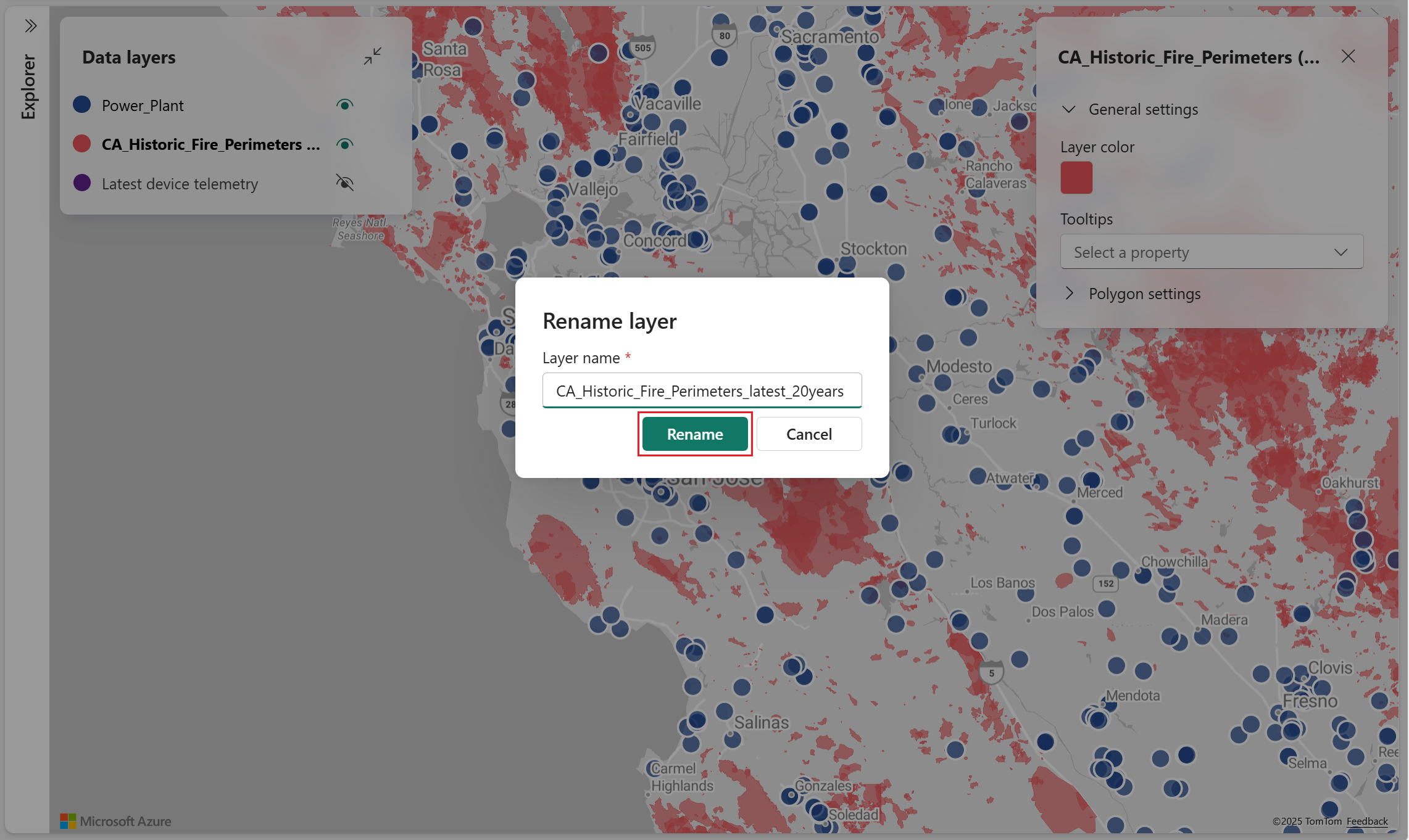 - Selezionare il livello dati da rinominare, quindi selezionare Rinomina nel menu popup.