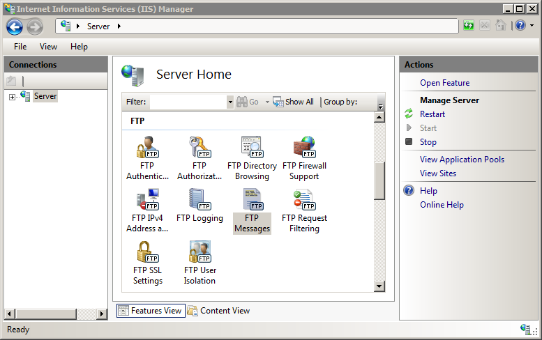 Nel riquadro Home del server fare doppio clic sulla funzionalità Messaggi FTP .