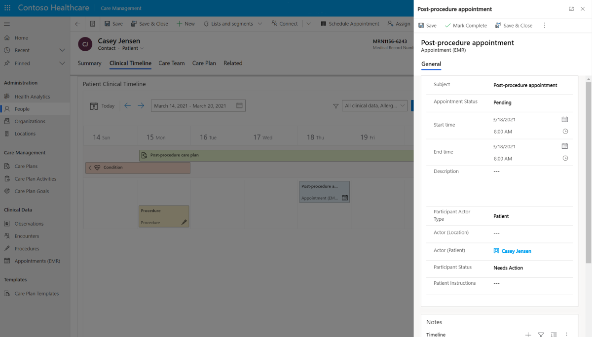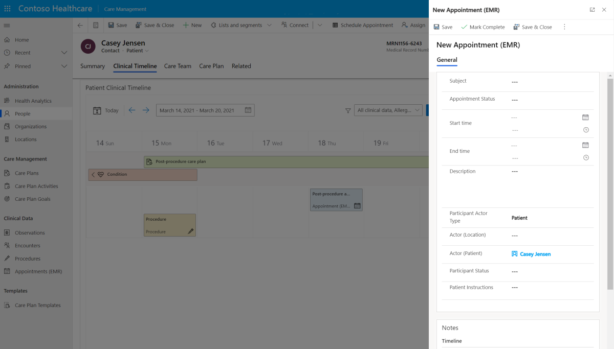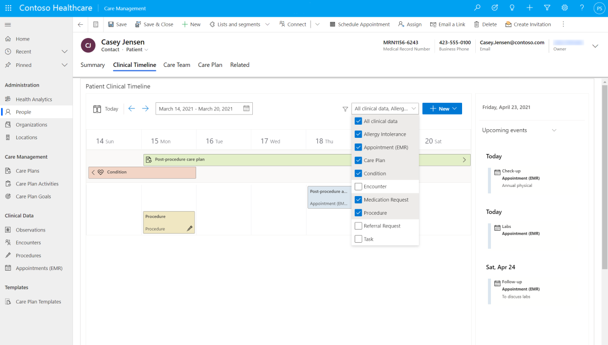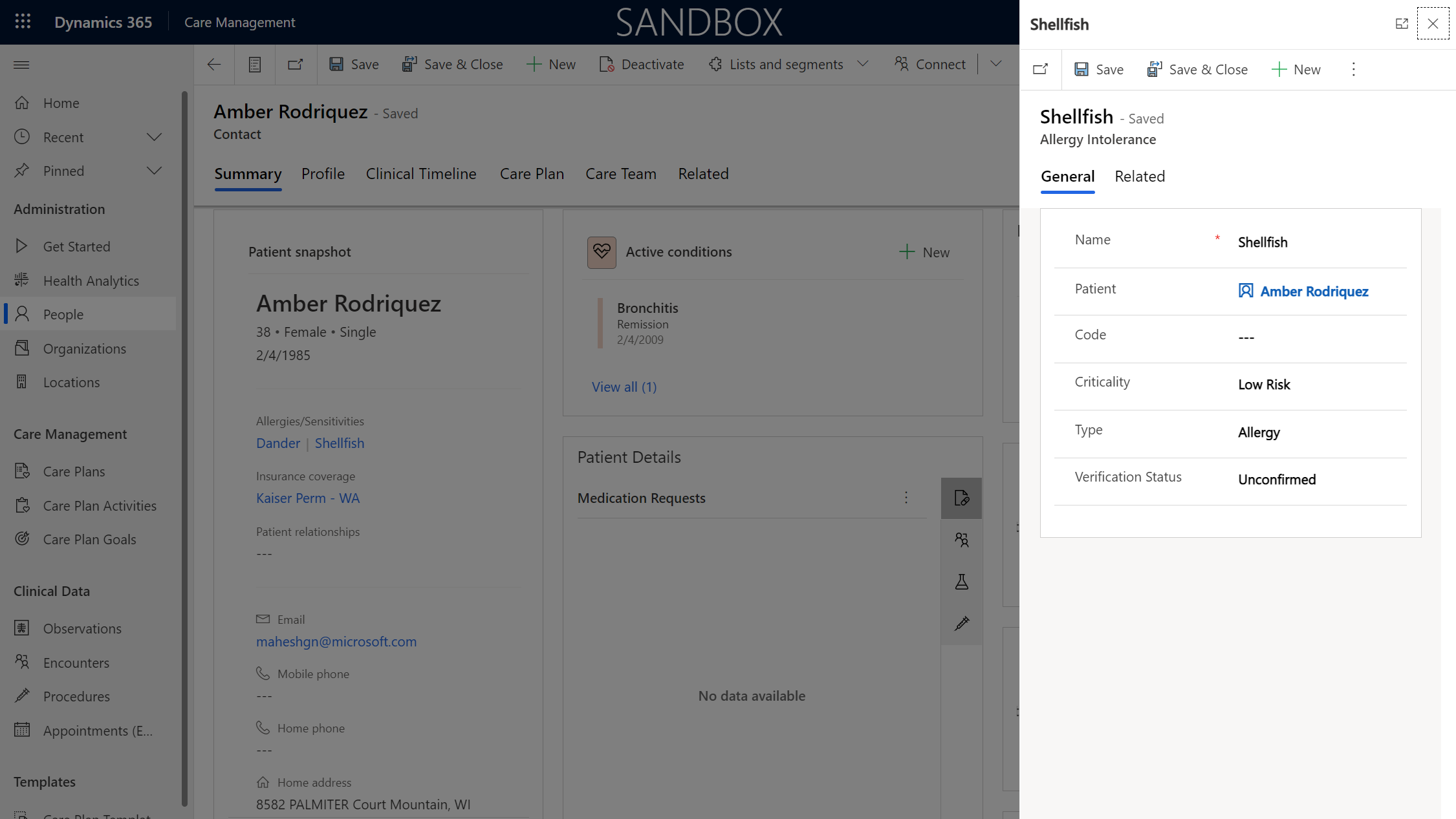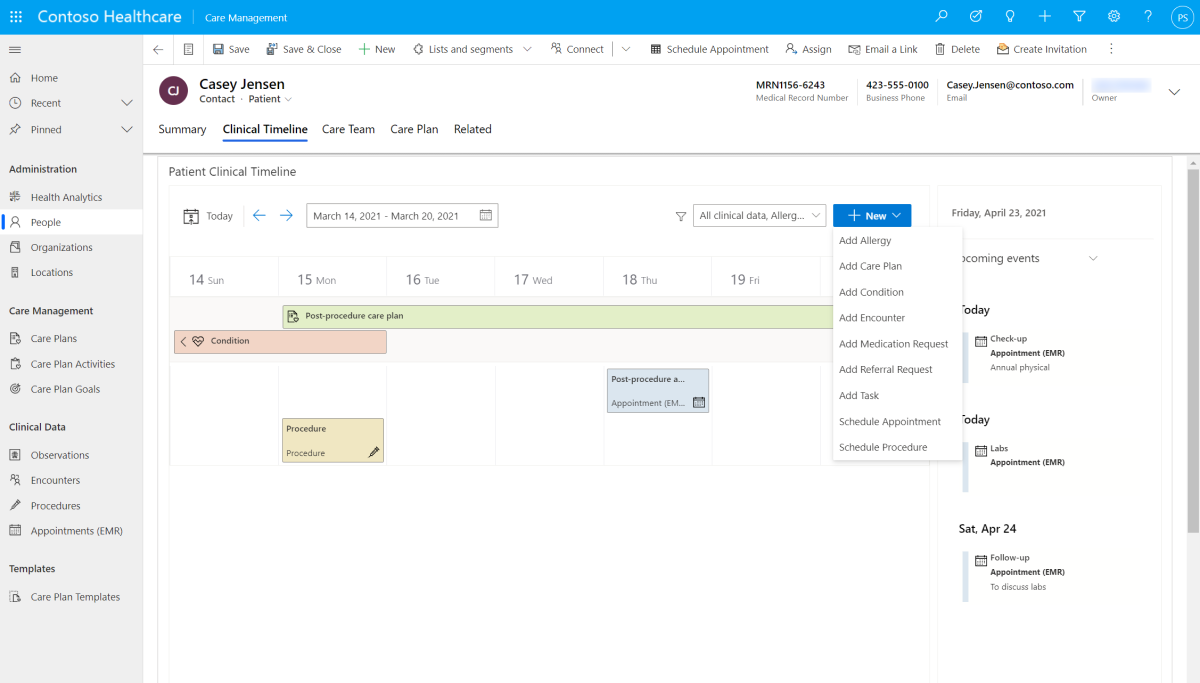 La visualizzazione unificata dei pazienti visualizza i dati dei pazienti nelle app basate su modello Dynamics, incluse le informazioni demografiche e i dati clinici. Include anche la sequenza temporale clinica e i controlli del team di assistenza.